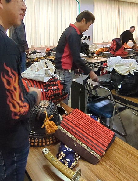 まずは「三鱗会(みつうろこかい)」様の全面協力のもと、甲冑の着付け体験。