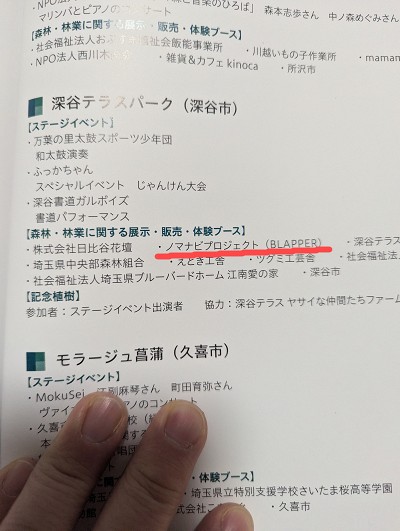 早速、記念誌のページをめくってみると……ありました! 「深谷テラスパーク(深谷市)会場」の記録ページに、私たちの名前がしっかりと刻まれています。